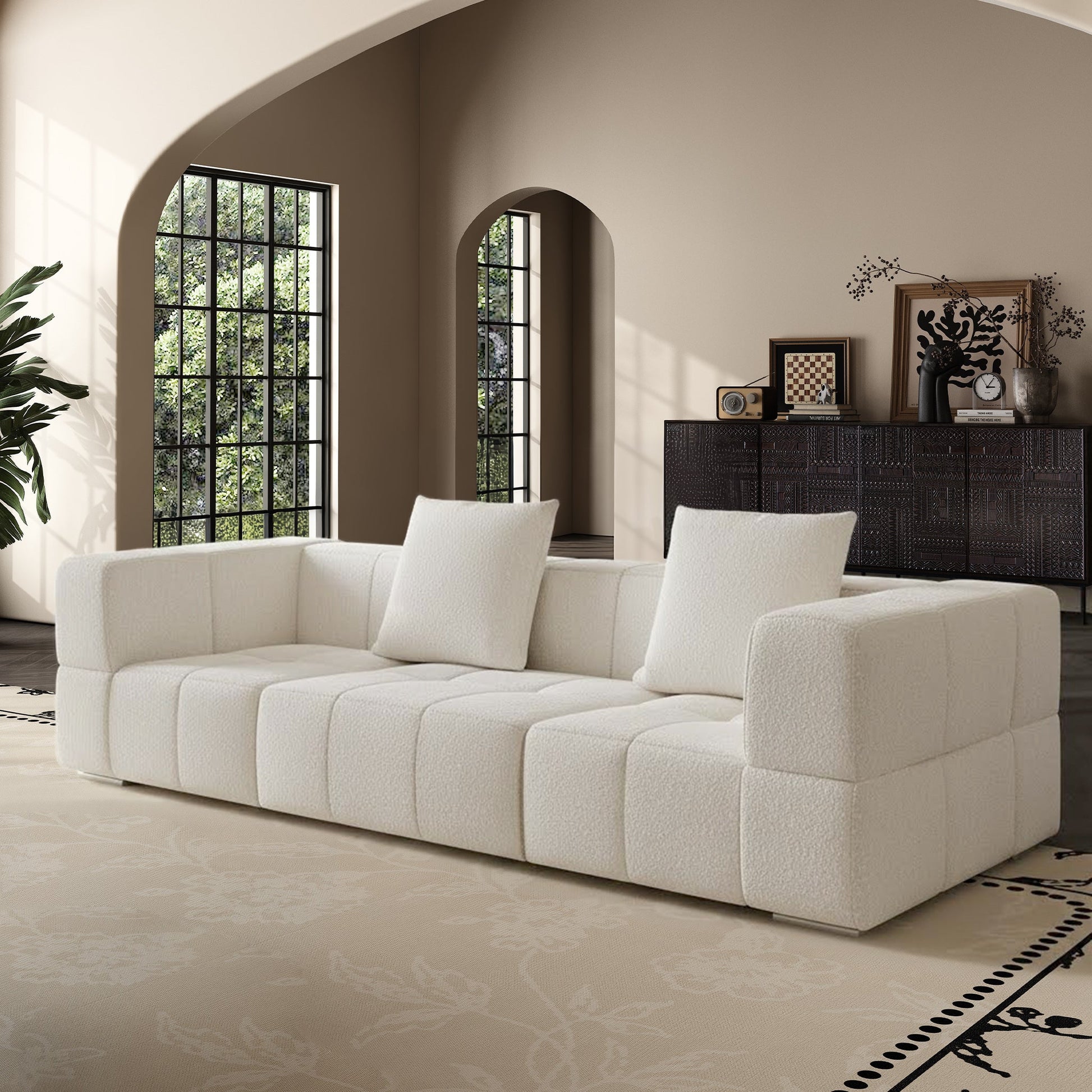Cube Milk Sherpa Fleece Compressed Sofa